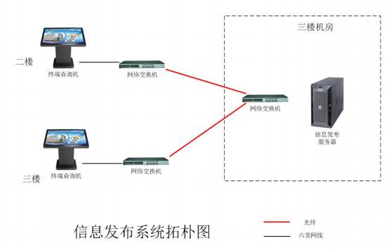 一樓安裝多媒體信息查詢、發(fā)布及引導系統(tǒng)。采用落地式觸摸屏,由機房中央服務(wù)器統(tǒng)一進行信息